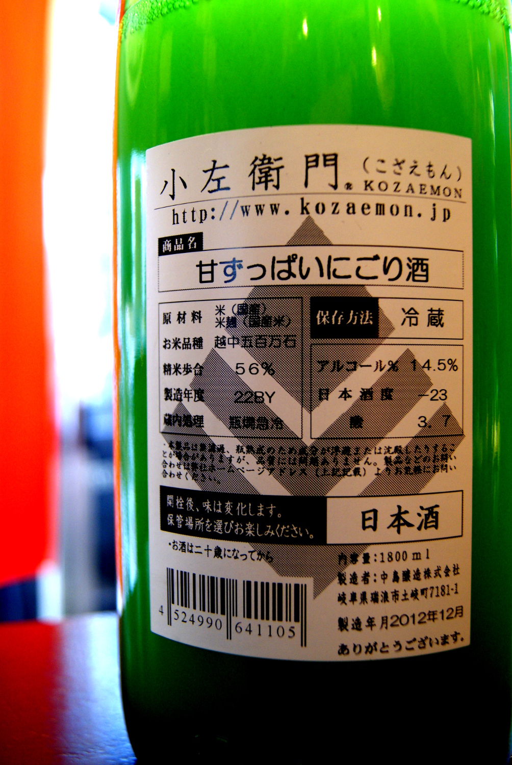 岐阜「小左衛門・甘ずっぱいにごり酒」