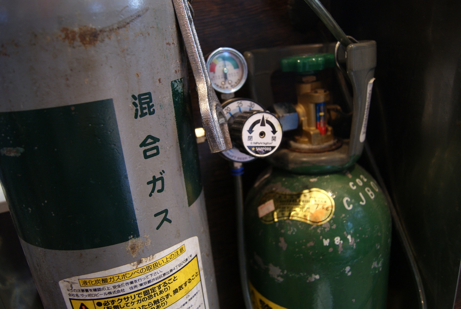 左に見えるのが混合ガス。